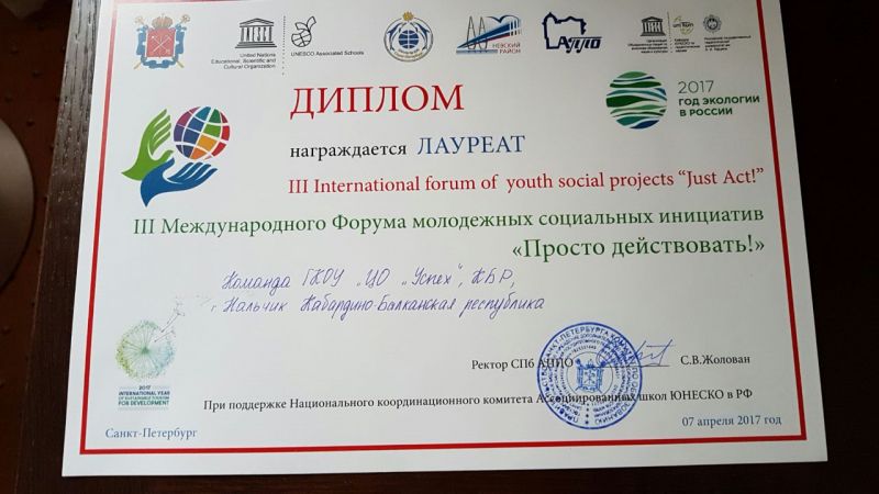 Команда Центра образования «Успех» (г. Нальчик, КБР) приняла активное участие в Международном форуме молодежных социальных инициатив "Просто действовать"