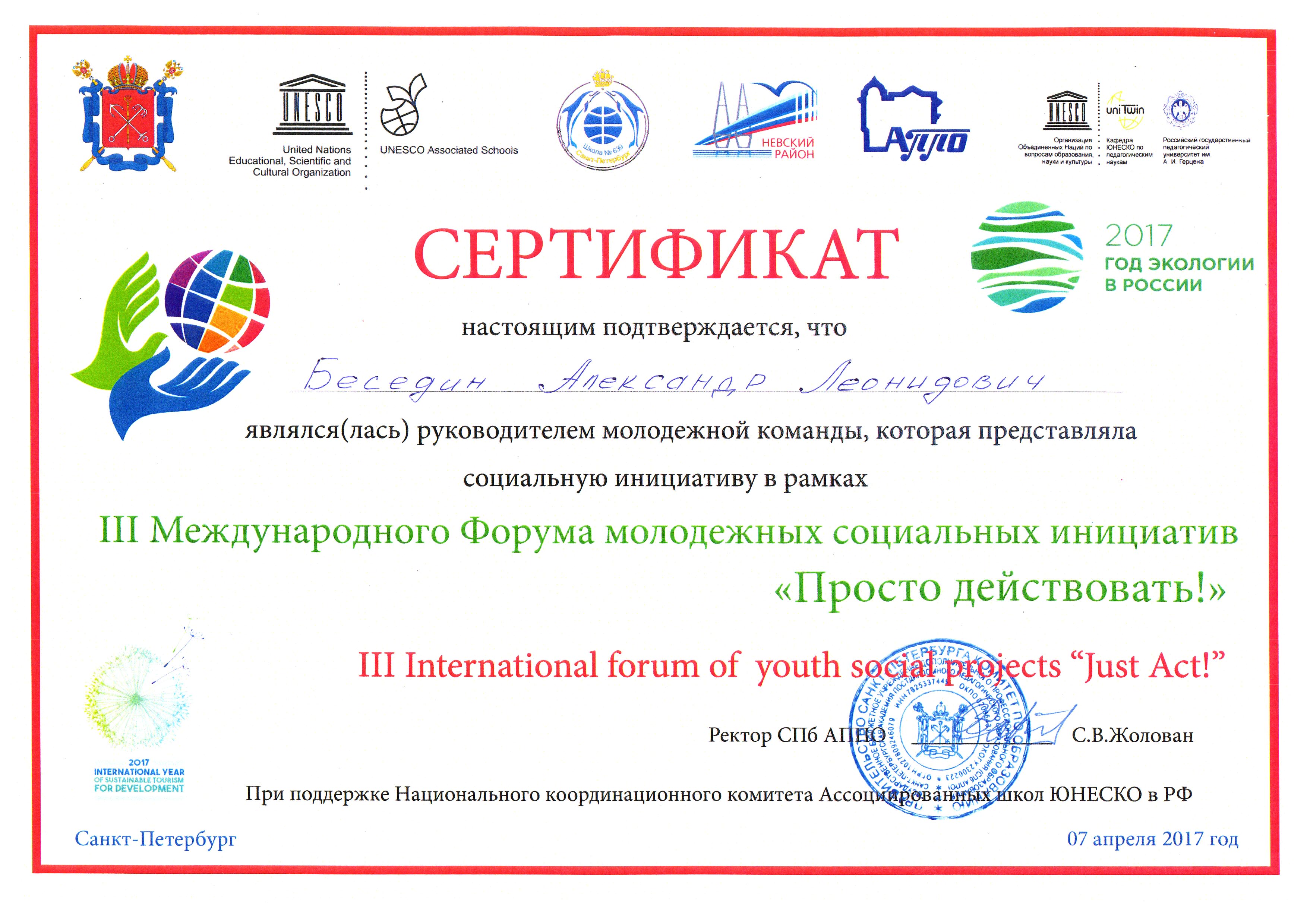 Из отзыва организаторов Международного форума Youth social Projects “Just Act!”, напрвленного в Центр образования "Успех" :