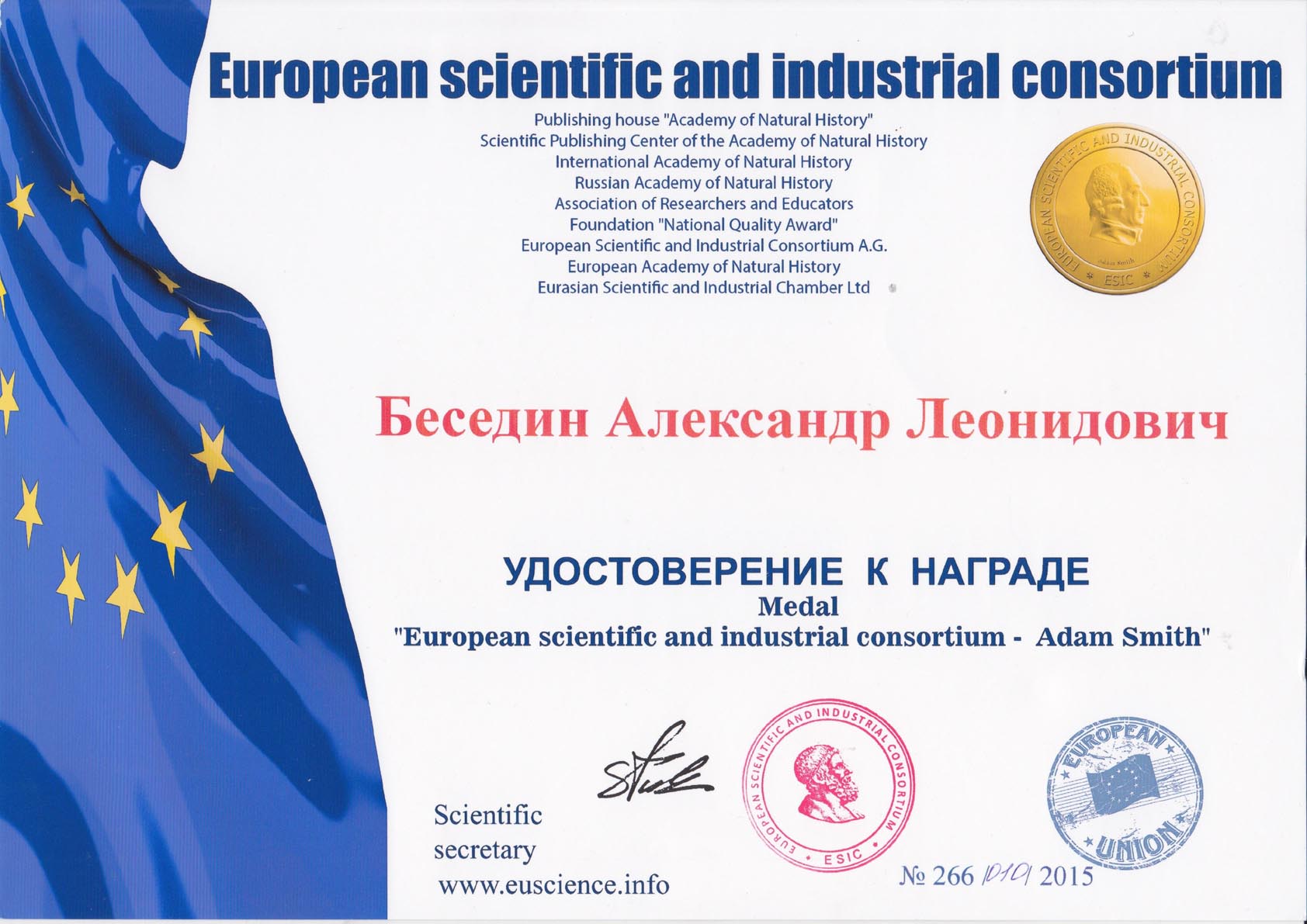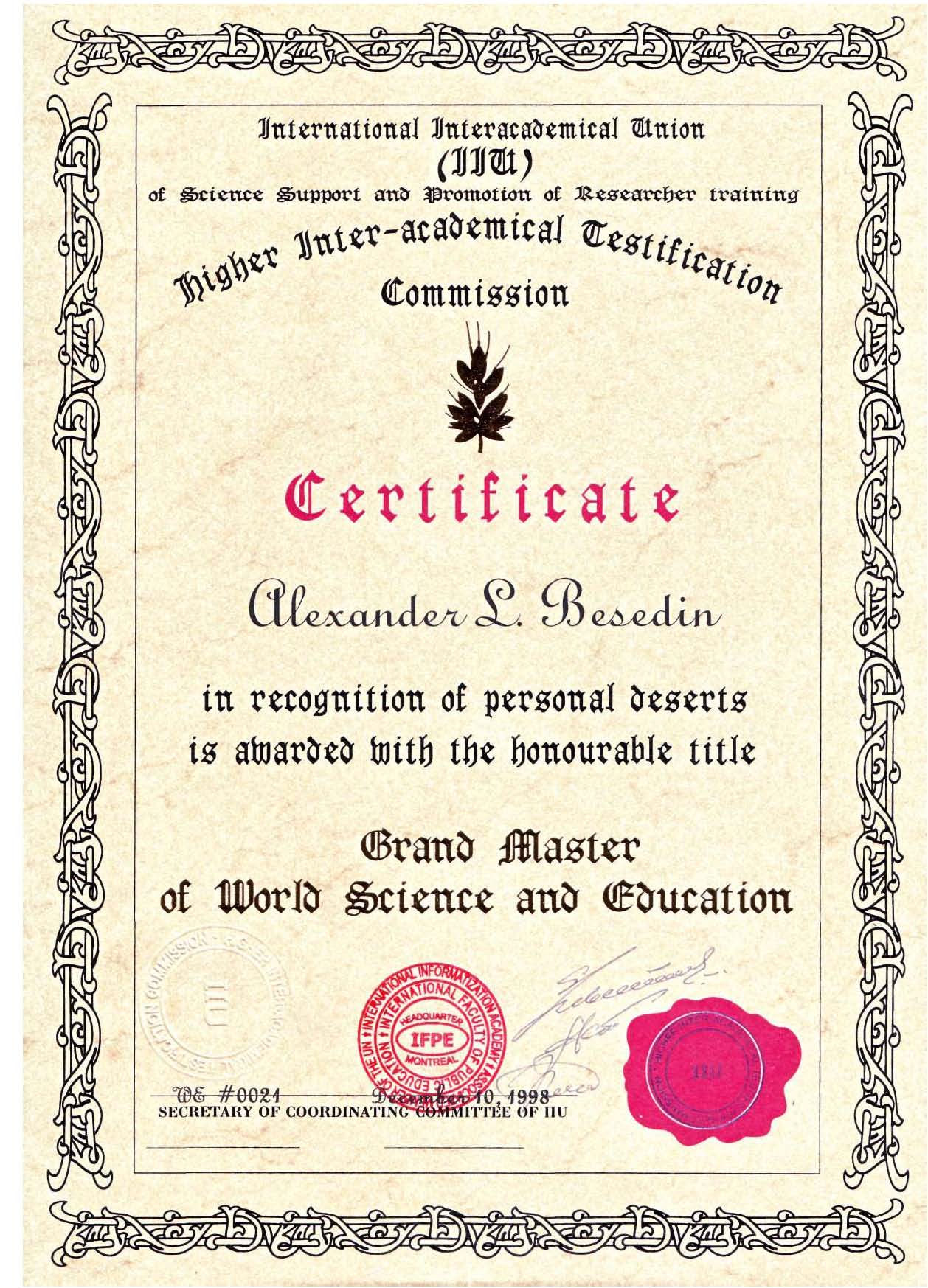 академика Российской академии естествознания, Международной академии информатизации и Международной академии энергоинформационных наук, д.э.н., доктора общественного развития (Doctor of Public Creation), профессора РАНХиГС при Президенте РФ, члена Российской Ассоциации управления проектами - СОВНЕТ, заслуженного деятеля науки и образования, трижды лауреата Международного конкурса "Элита информациологов Мира"